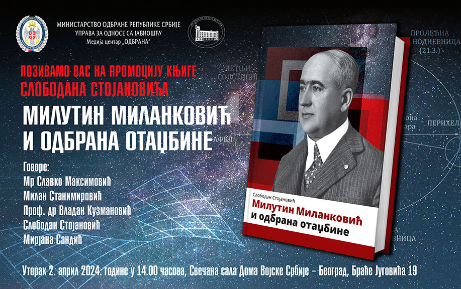 У Дому Војске Србије 02. априла у 14,00 часова одржаће се промоција монографије Милутин Миланковић и одбрана отаџбине, аутора Слободана Стојановића, потпредседника Удружења Милутин Миланковић. О детаљима промоције видети на позивници.