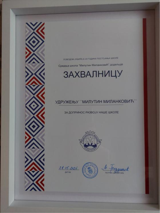 Традиционално, годинама већ, Образовни систем “Милутин Миланковић” на Дан рођења научника организује свечане седнице на којима се промовишу резултати ученика, студената и наставног особља, када се додељују признања најбољима и на веома достојанствен начин промовишу лик и дело научника чије име са поносом носи образовна институција. И ове године је уприличена таква свечаност на којој је, такође традиционално, било запажено присуство представника нашег Удружења.